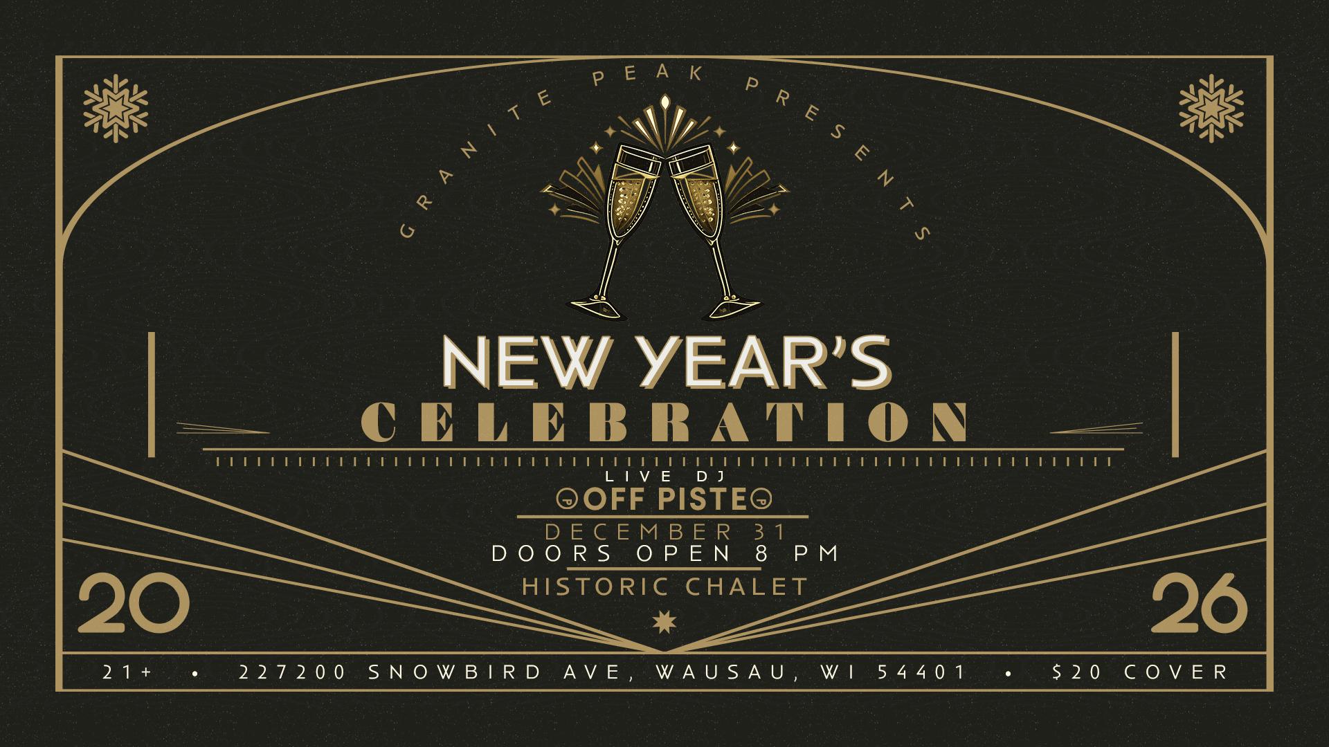 Ring in the New Year at Granite Peak’s exclusive adults-only party! Join us from 8 PM to midnight for a night of fun featuring live DJ's, delicious hors d'oeuvres, and a champagne toast at midnight—all for just a $20 cover. Grab your friends, hit the dance floor, and celebrate 2026 in style at the slopes. Fireworks and Torch Parade at 7 PM are open to all ages!